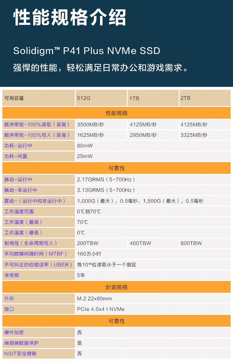 SSDPFKNU010TZX1 Solidigm/Intel P41 PLUS 1T M.2 NVMe固態硬盤
