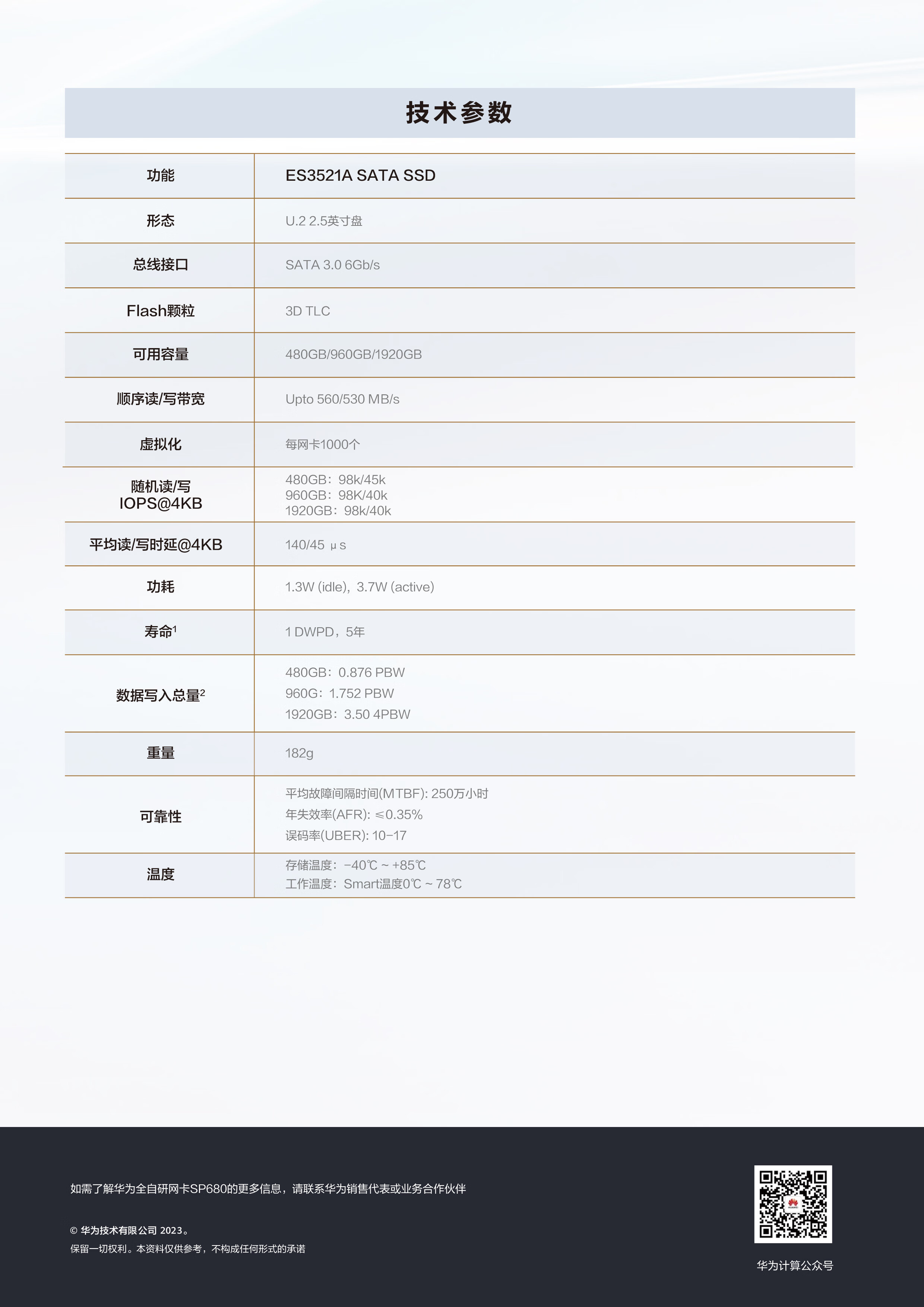 S1920NAATA09華為ES3521A V6 2.5寸SATA3 1.92T企業(yè)級(jí)SSD