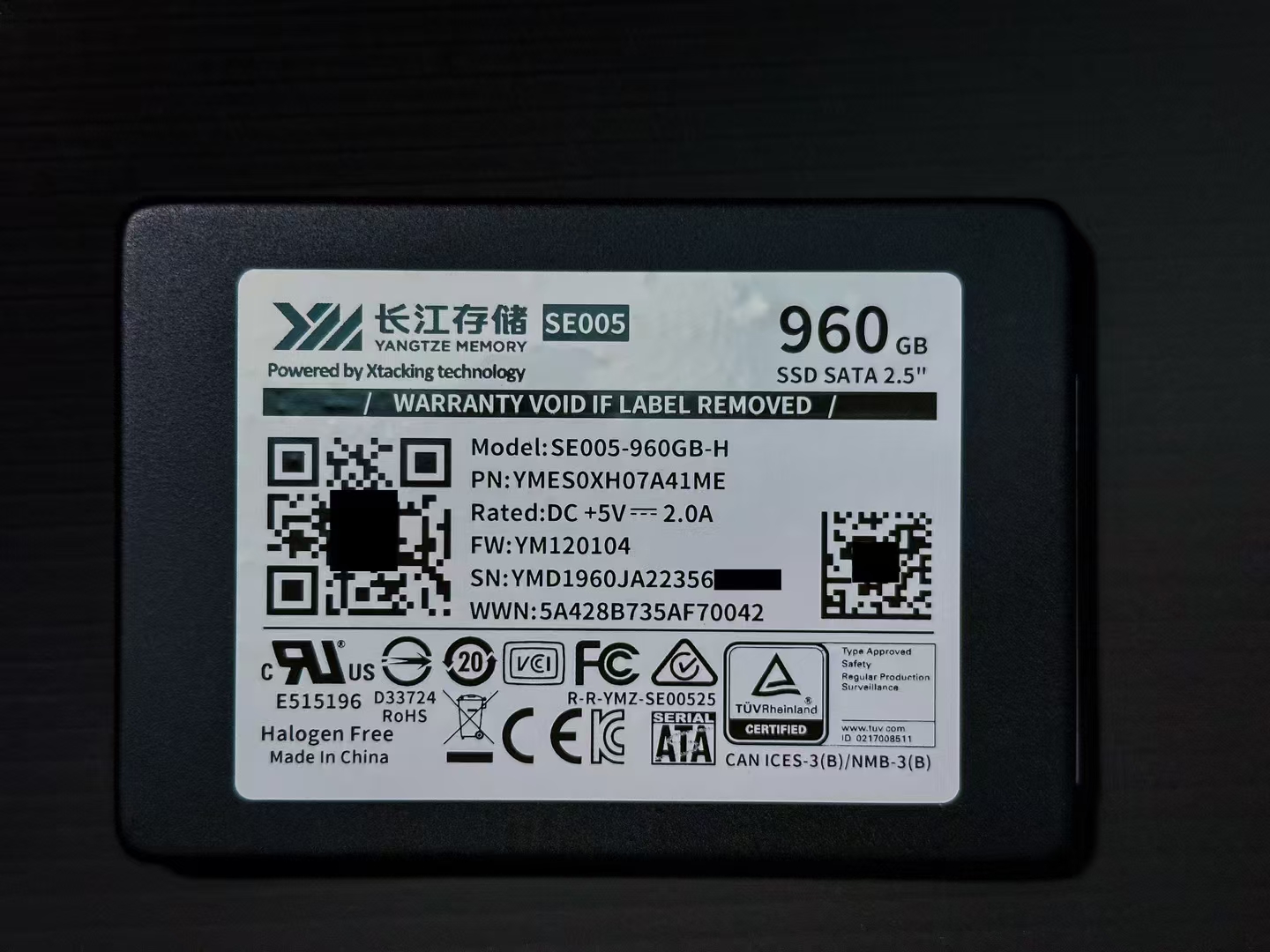 YMES0XH07A41ME長江存儲SE005 960G 2.5寸SATA3企業級SSD